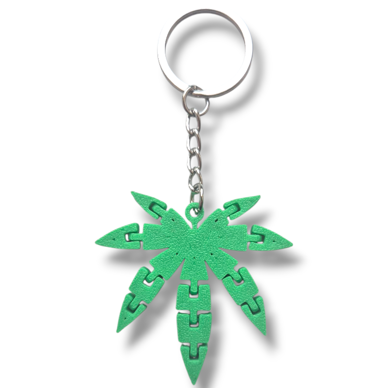 Ten brelok w kształcie liścia konopi to idealny dodatek dla fanów marihuany, streetwearu i luźnego stylu życia. Wykonany z trwałego plastiku i wydrukowany w 3D, ma ruchome segmenty, które nadają mu unikalny wygląd.